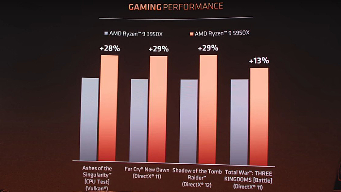 게임 퍼포먼스에서 전 라이젠 3950x 보다 적게는 13%, 많게는 29%까지 성능이 올랐습니다.