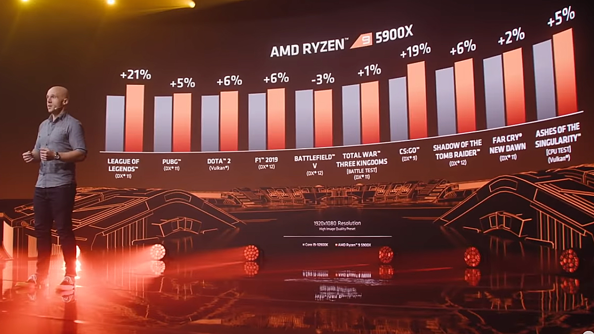 그리고 인텔 라이젠 5950x VS i9-10900K와 비교해도 전체적으로 더 좋은 성능을 보여줍니다. 위 그래프를 보면 적게는 6%, 많게는 무려 59% 높은 성능을 보여줍니다. 정말 자랑할만하네요.